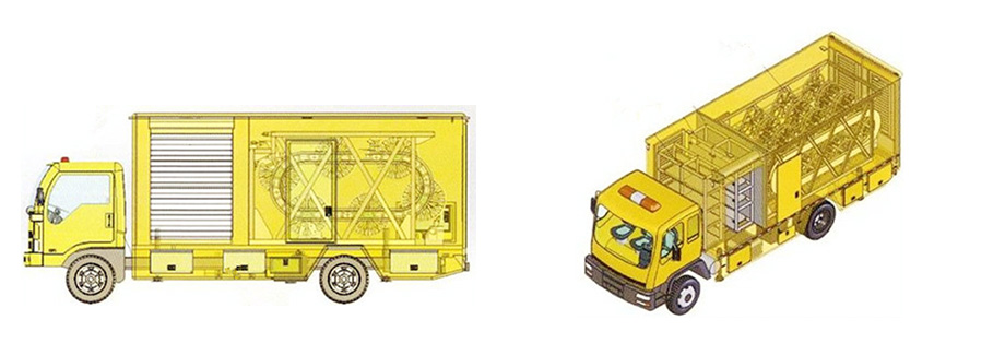 旁路電纜收放車(chē)主要由汽車(chē)底盤(pán)、箱體、電纜收放機構、高低壓柔性旁路電纜及其附件組成。底盤(pán)選用慶鈴等知名載貨汽車(chē)二類(lèi)底盤(pán);底盤(pán)上裝結構合理、強度高、密封性好的箱體;箱體內主要放置電纜收放機構總成、柔性旁路電纜,各附件存放于整車(chē)側面的工具箱內。整車(chē)結構設計合理、美觀(guān)、簡(jiǎn)便,便于旁路作業(yè)中電纜收放。